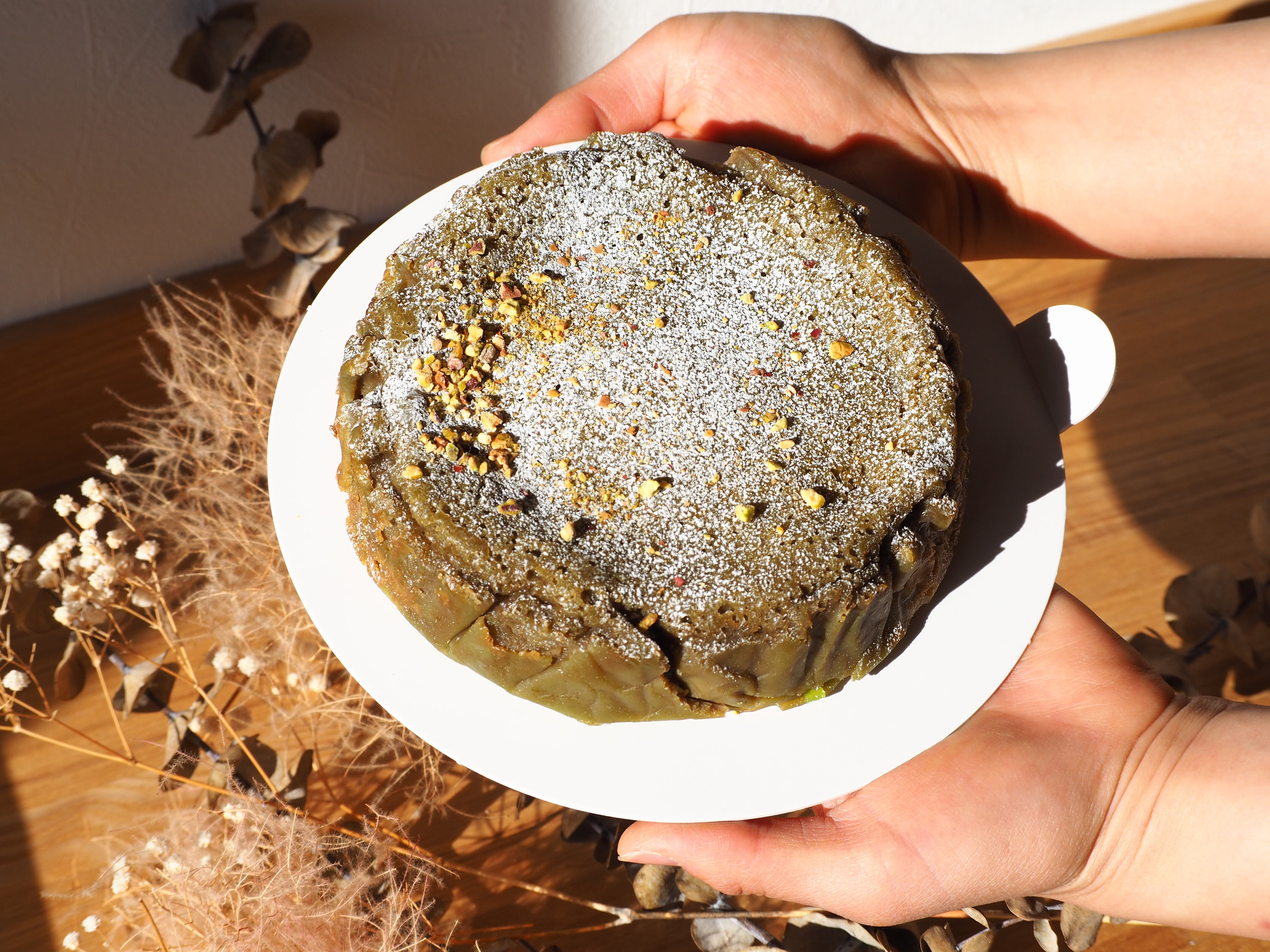 イタリアのシチリア島ブロンテ産、最高級ピスタチオを贅沢に使用し、ホワイトチョコレートと合わせ、口溶けの良い食感に仕上げた濃密な生ガトーショコラです。